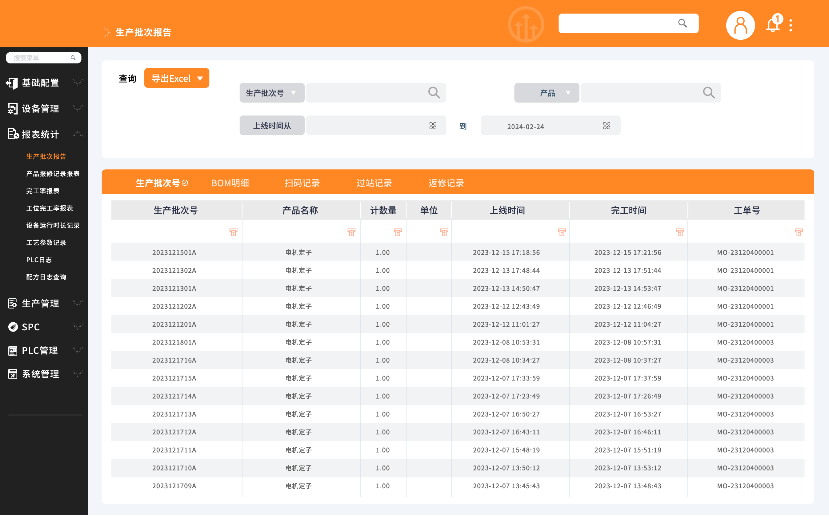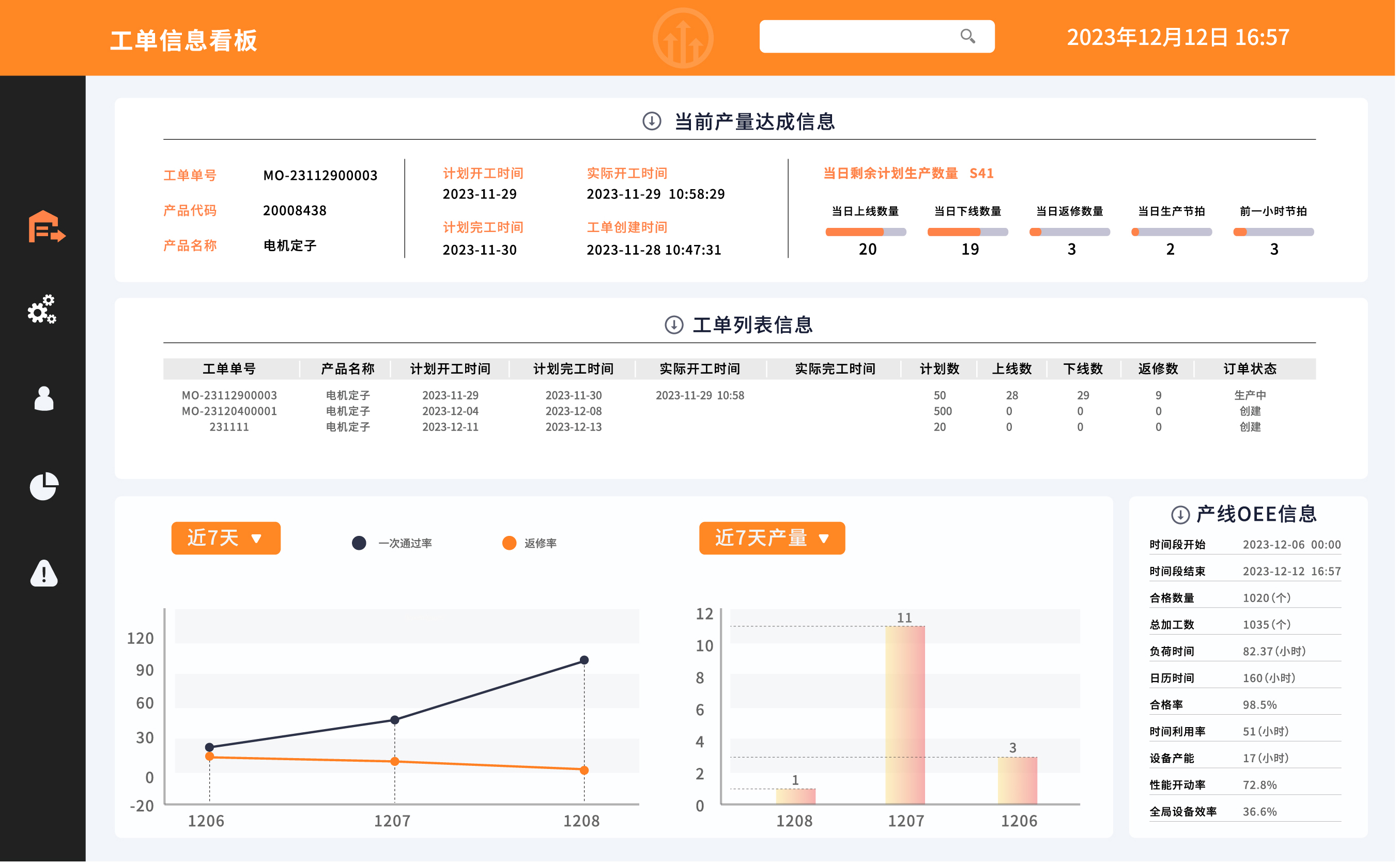 平臺支持對接ERP或企業的工廠級MES系統,讓定子產線實現從生產工單調度,派發到成品下線全過程實現數字化,透明化,用工單指導和驅動產線的生產活動,并可實現對ERP或工廠級MES的報工反饋,形成業務閉環。